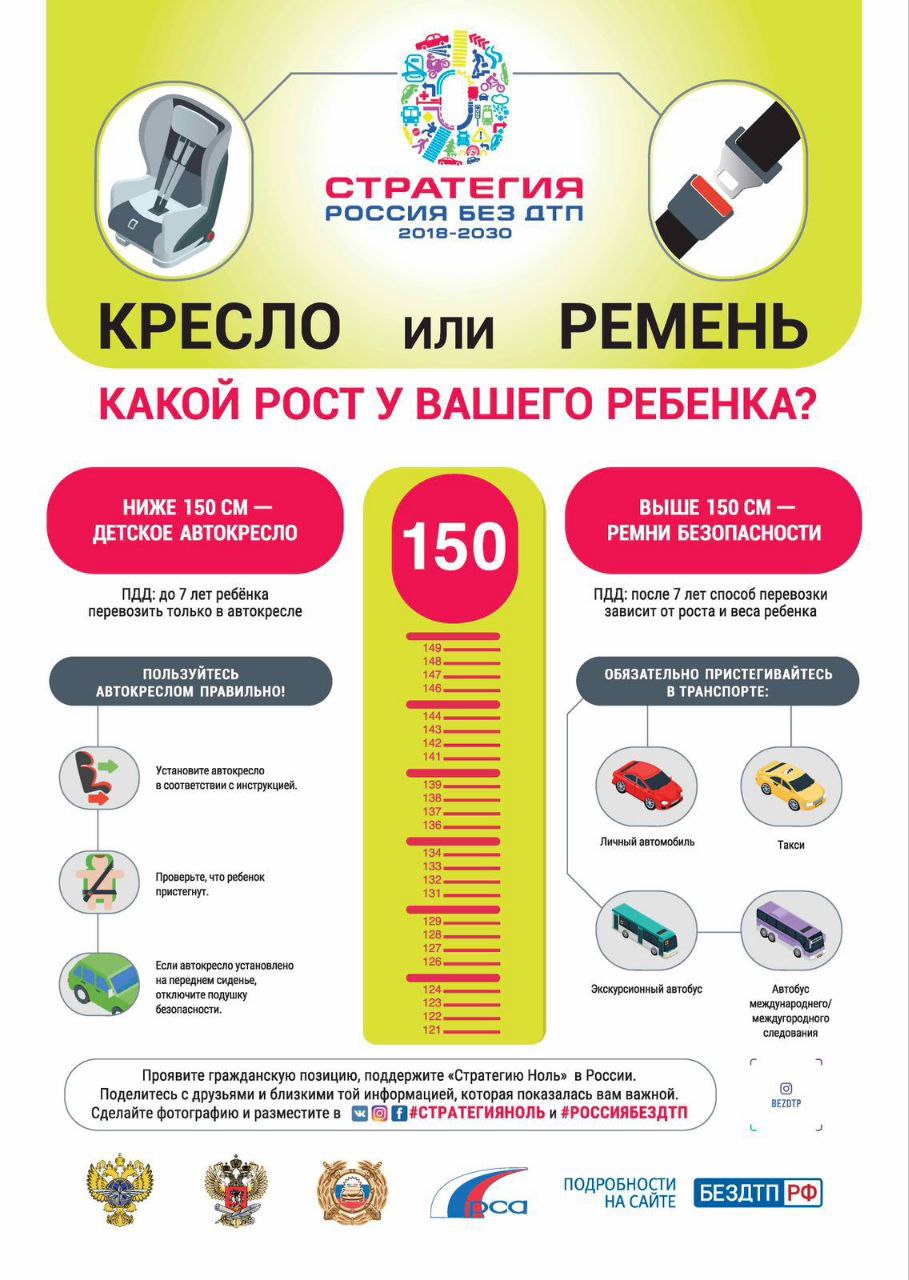 Памятка. Кресло или ремень. Какой рост у ребенка.