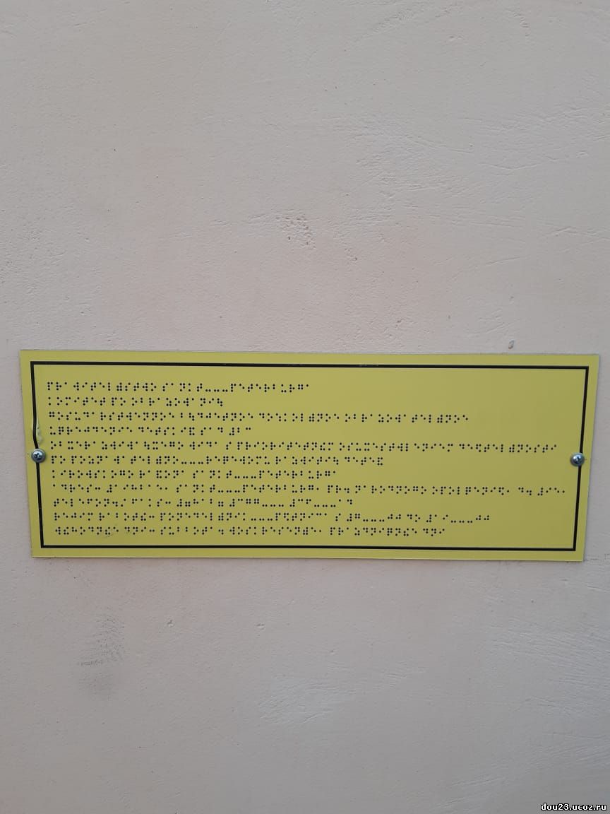 Доступная среда Название объекта Государственное бюджетное дошкольное образовательное учреждение детский сад №23 общеразвивающего вида с приоритетным осуществлением деятельности по познавательно-речевому развитию детей Кировского района Санкт-Петербурга Адрес 198215, Санкт-Петербург, проспект Народного Ополчения, дом 95, Лит. A Телефон 372-23-70 Факс 377-36-14 Электронная почта Официальный сайт в информационно-коммуникационной сети "Интернет" Официальный сайт для размещения информации о государственных (муниципальных) учреждениях Режим работы ОУ понедельник – пятница с 07.00 до 19.00 часов Выходные дни: суббота, воскресенье и праздничные дни, установленные законодательством Российской Федерации Предоставление услуг на объекте Перед входом в здание имеется кнопка вызова для обращения маломобильных групп населения и инвалидов о помощи сопровождения к месту предоставления услуг. Перед входом в здание для инвалидов с нарушением зрения имеется информация выполненная рельефно-точечным шрифтом Брайля. Назначен ответственный сотрудник учреждения: старший воспитатель Лобова Наталья Николаевна (телефон (812) 372-23-70) обеспечивающий сопровождение категорий инвалидов, при входе и выходе из здания, по путям перемещения внутри здания, до места предоставления услуги, с которым проведен инструктаж.